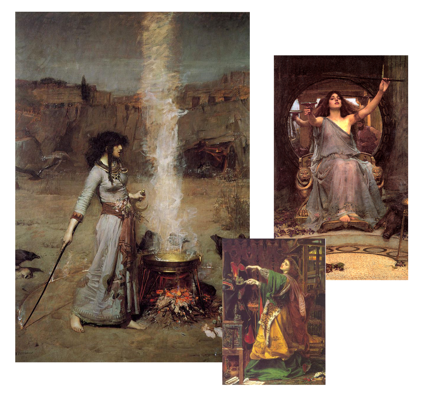 With the Pre-Raphelite movement, artists sought to regain what was "lost" with the Masters of the Renaissance. They thought that the strict formulas and poses for art-making were too restrictive, so they wanted to return to the bright colors and attention to detail of the Italian Quattrocento. Their subjects were often women and the beautiful subjects of literature. They were concerned with nature and oftentimes magic. For this reason, the witch imagery that came from this era marked a switch in the witch identity. No longer were they necessarily evil women to be feared. Instead, they were women close to nature, their beauty and symbolism emphasized. Characters like Morgan Le Fay and Circe were popular to paint, since they represented themes of magic, transformation, and prophecy. Basically, magical women were actually revered during this period of art.